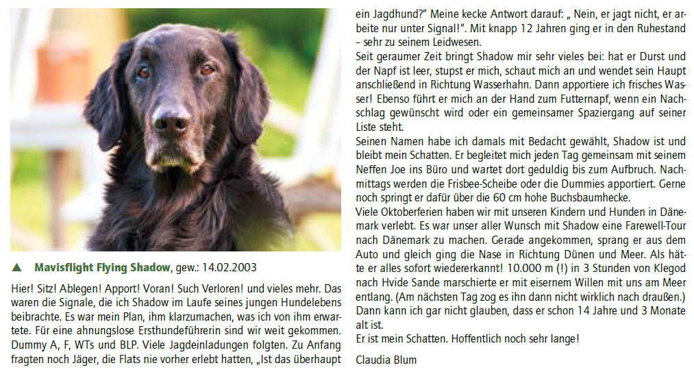 Mavisflight Flying Shadow Posted on Juni 1, 2017Juli 19, 2017Categories Aktuelles Flatcoat Ü10 – geliebte graue Schnauzen, ein Bericht der Clubzeitung „Der Retriever“ www.drc.de
